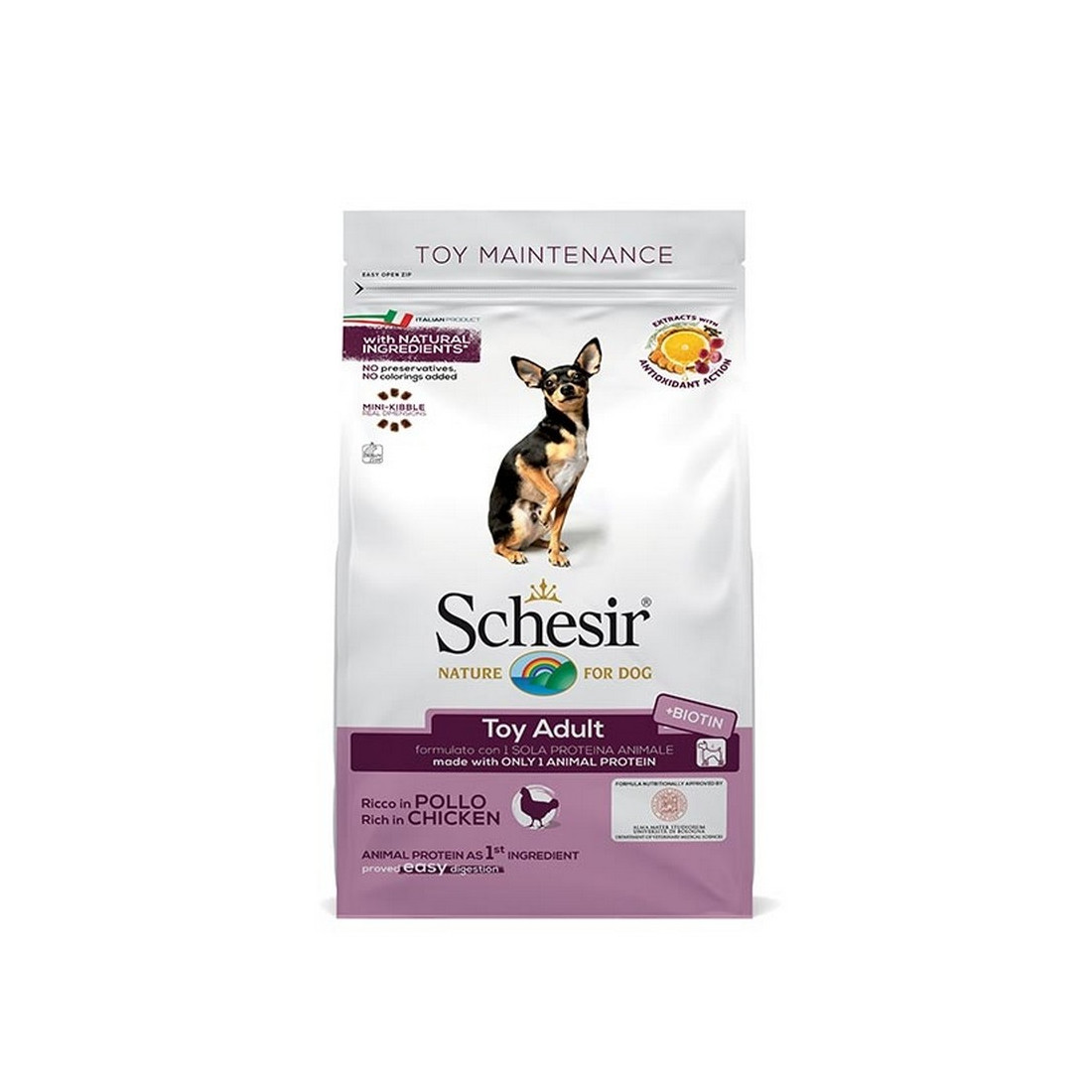 Schesir Dog Mantenimento e’ un alimento naturale con vitamine e minerali per le esigenze di tutti i cani di piccola taglia. Alta digeribilita’, senza coloranti e conservanti. Monoproteico. Questa gamma di crocchette è formulata per rispondere alle esigenze nutrizionali dei cani di taglia piccola di qualsiasi razza, nelle varie fasi di vita e per aiutarli a mantenere un buono stato di salute.