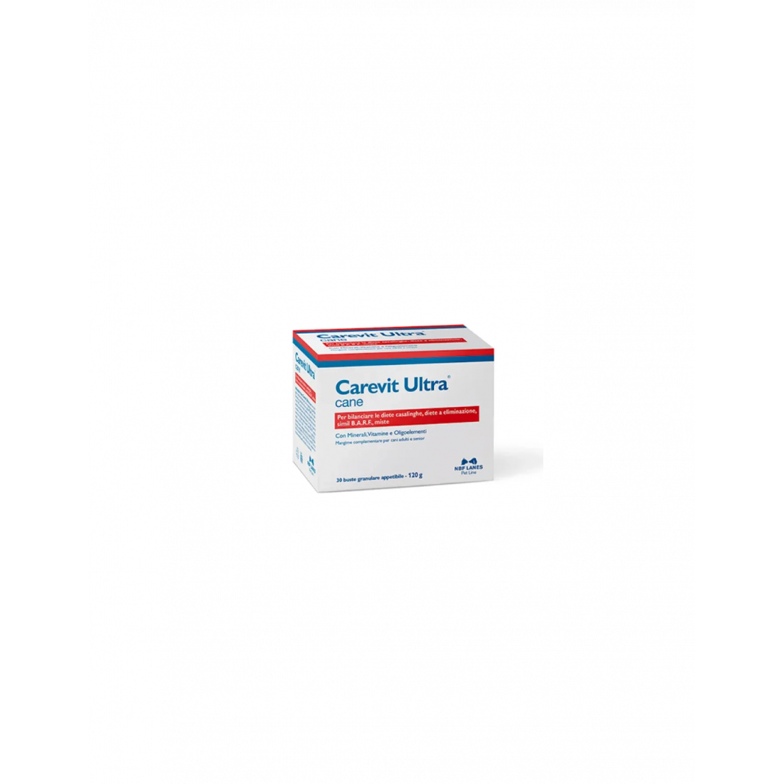 Carevit Ultra cane è un mangime complementare per cani in granulare appetibile, formulato rispettando le linee guida FEDIAF ed i riferimenti NRC, con minerali, vitamine e oligoelementi essenziali per bilanciare la dieta casalinga del cane adulto e anziano, le diete ad eliminazione, le diete a base di carne e/o frattaglie senza cereali (simil B.A.R.F. senza ossa), le diete miste (commerciale + casalinga : quando la dieta casalinga apporta più del 50% del fabbisogno energetico).