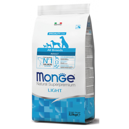 Monge Natural Superpremium All breeds Adult Light** è un alimento completo per cani adulti di tutte le taglie. Specificamente sviluppato pensando al benessere del tuo cane, grazie alla presenza di sostanze nutritive di qualità frutto della ricerca Made in Italy.