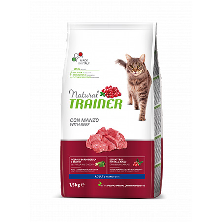 La carne fresca consente di offrire un alimento altamente appetibile e dall’ottimale profilo proteico, ideale per un vero carnivoro. La moderna formulazione rende ora possibile assecondare l’istinto ancestrale del gatto a cambiare gusto alternando le diverse referenze “Adult” in tutta libertà e sicurezza, senza effettuare un passaggio graduale (Trainer® Safe Transition). Gli estratti secchi di Propoli, Menta piperita e di mela(AppleZin™) aiutano a mantenere una corretta igiene orale. L’estratto di Mirtillo rosso ed il contenuto apporto di Fosforo e Magnesio aiutano a preservare nel tempo la funzionalità delle vie urinarie. Per il benessere della cute e la bellezza del manto la ricetta è arricchita con zinco, biotina e alga schizochytrium; mentre il lievito di birra ed i prebiotici favoriscono l’equilibrio intestinale e l’efficienza digestiva.