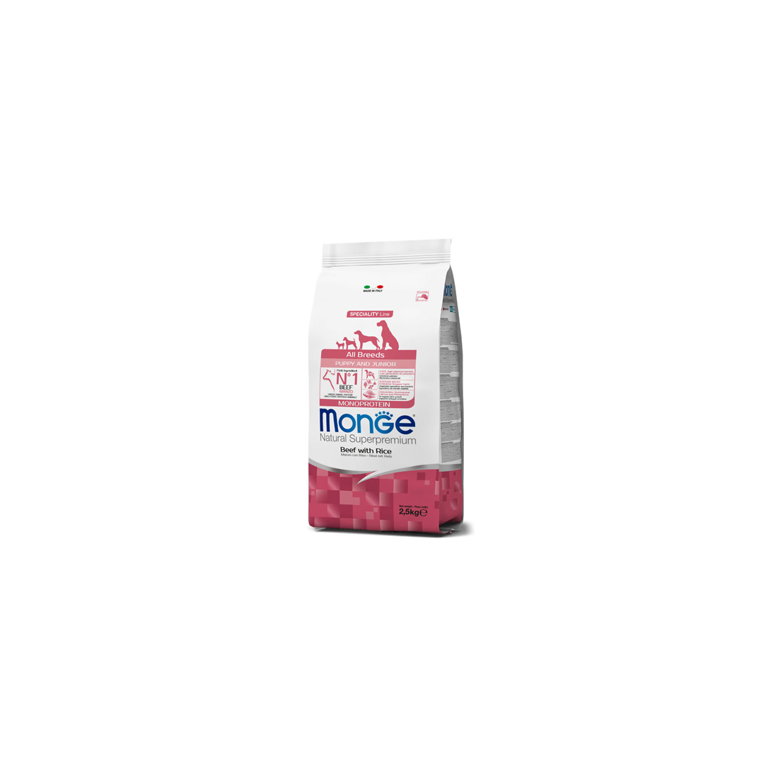 Monge Natural Superpremium All breeds Puppy and Junior Monoprotein Manzo con riso è un alimento completo per cani cuccioli di tutte le taglie. Specificamente sviluppato pensando al benessere del tuo cane, grazie alla presenza di sostanze nutritive di qualità frutto della ricerca Made in Italy.