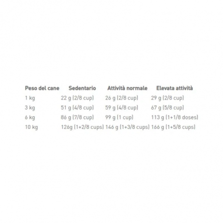 proteine di pollame disidratate, grassi animali, riso, proteine vegetali isolate*, farina di frumento precotta, farina di mais, idrolizzato di proteine animali, fibre vegetali, polpa di barbabietola, sali minerali, olio di pesce, frutto-oligosaccaridi, olio di borraggine, estratto di fiore di Tagete (fonte di luteina). ADDITIVI (per kg): Additivi nutrizionali: Vitamina A: 29500 UI, Vitamina D3: 800 UI, E1 (Ferro): 38 mg, E2 (Iodio): 3,9 mg, E4 (Rame): 12 mg, E5 (Manganese): 50 mg, E6 (Zinco): 133 mg, E8 (Selenio): 0,08 mg - Conservanti - Antiossidanti. COMPONENTI ANALITICI: Proteina grezza: 30,0% - Oli e grassi grezzi: 22,0% - Ceneri grezze: 4,8% - Fibra grezza: 2,6%. ISTRUZIONI PER L’USO: vedi tabella. Da consumarsi preferibilmente entro/n° di lotto/n° di identificazione dello stabilimento: vedi informazioni sulla confezione. Da conservare in un luogo fresco ed asciutto. L.I.P.: proteine selezionate per la loro elevata digeribilità.