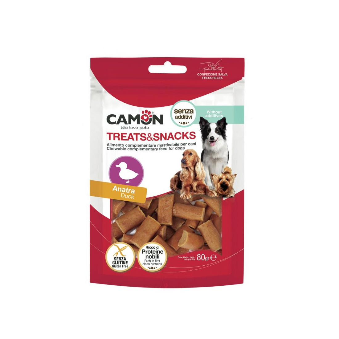 Spuntini ricompensa per cani adulti a base di anatra, senza additivi, ricchi di proteinenobili e senza glutine.