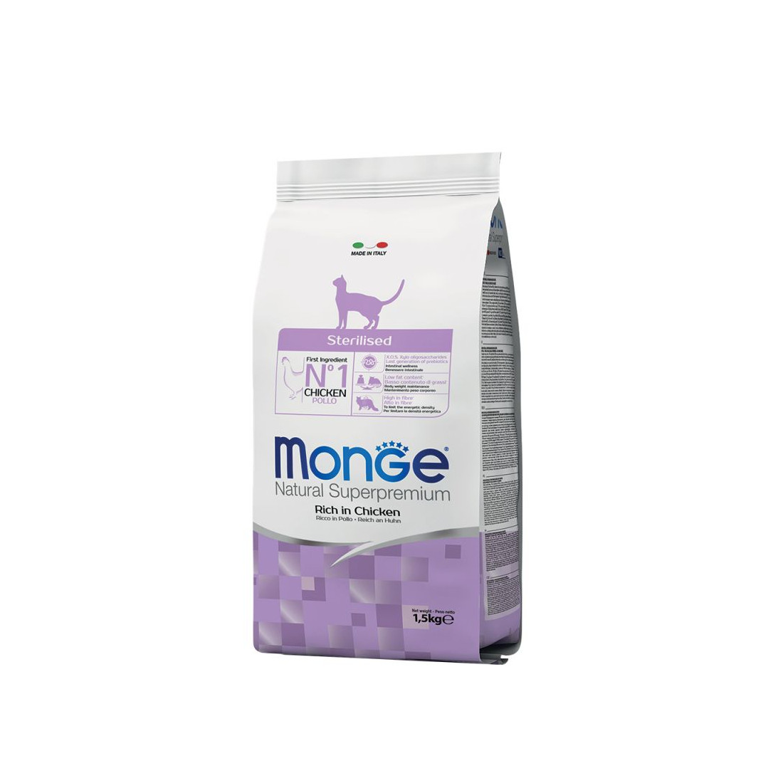Monge Natural Superpremium Sterilised Ricco di Pollo Crocchette per gatti .1,5 KG