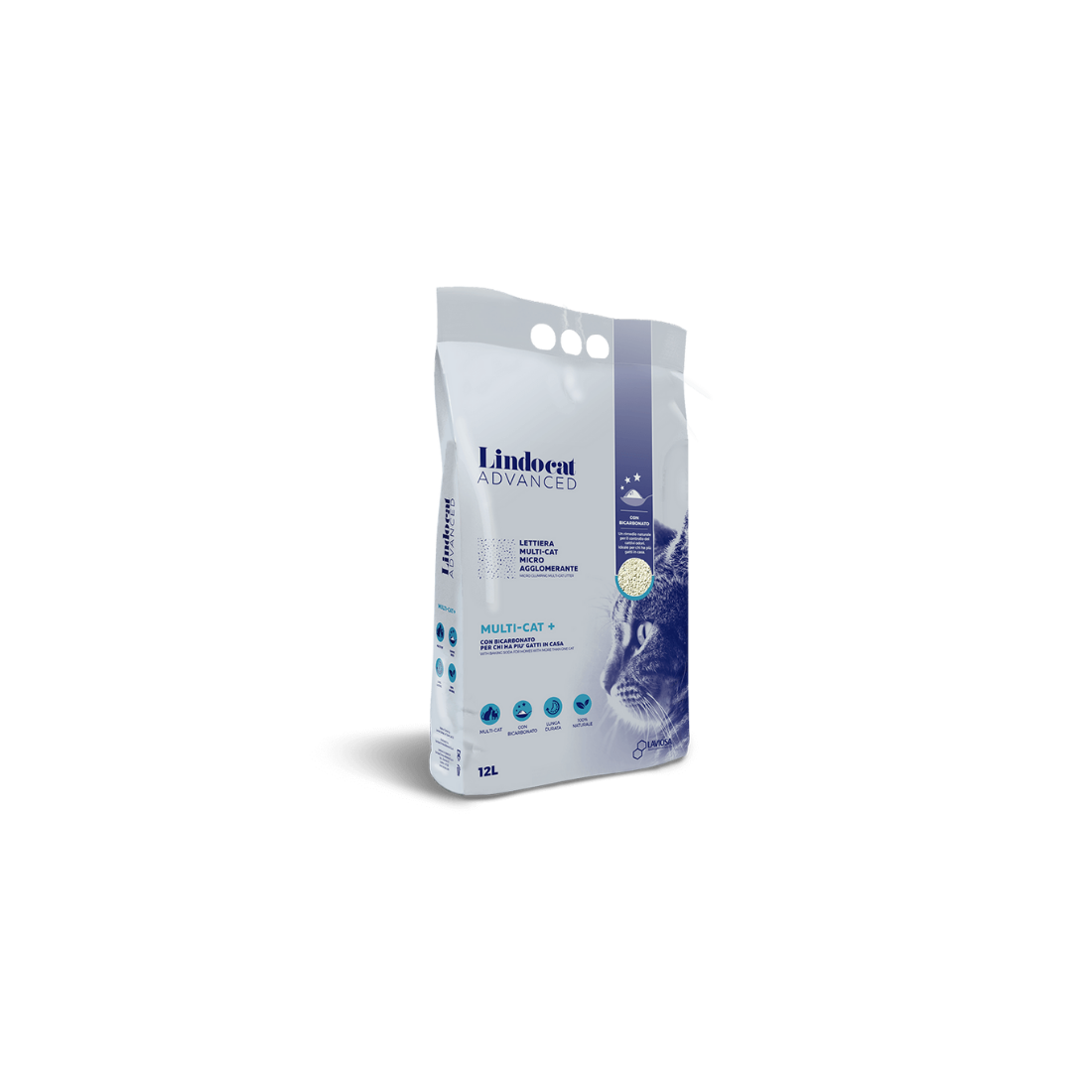 Lindocat Advanced Lettiera Multicat è una lettiera igienica agglomerante di alta qualità, composta al 100% da bentonite di pregiato ed unico colore bianco, a granulometria fine, che permette una rapidissima agglomerazione e la formazione di solidi grumi, con uno spreco di prodotto minimale per una maggiore durata nel tempo.