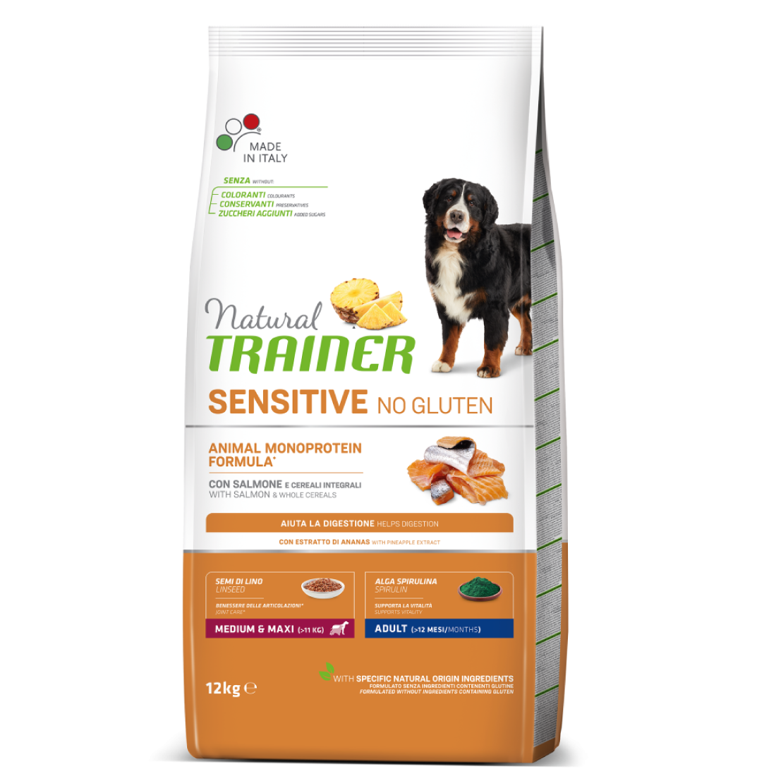 Tutte le caratteristiche di Natural Trainer Sensitive No Gluten Adult Medium/Maxi con Salmone: