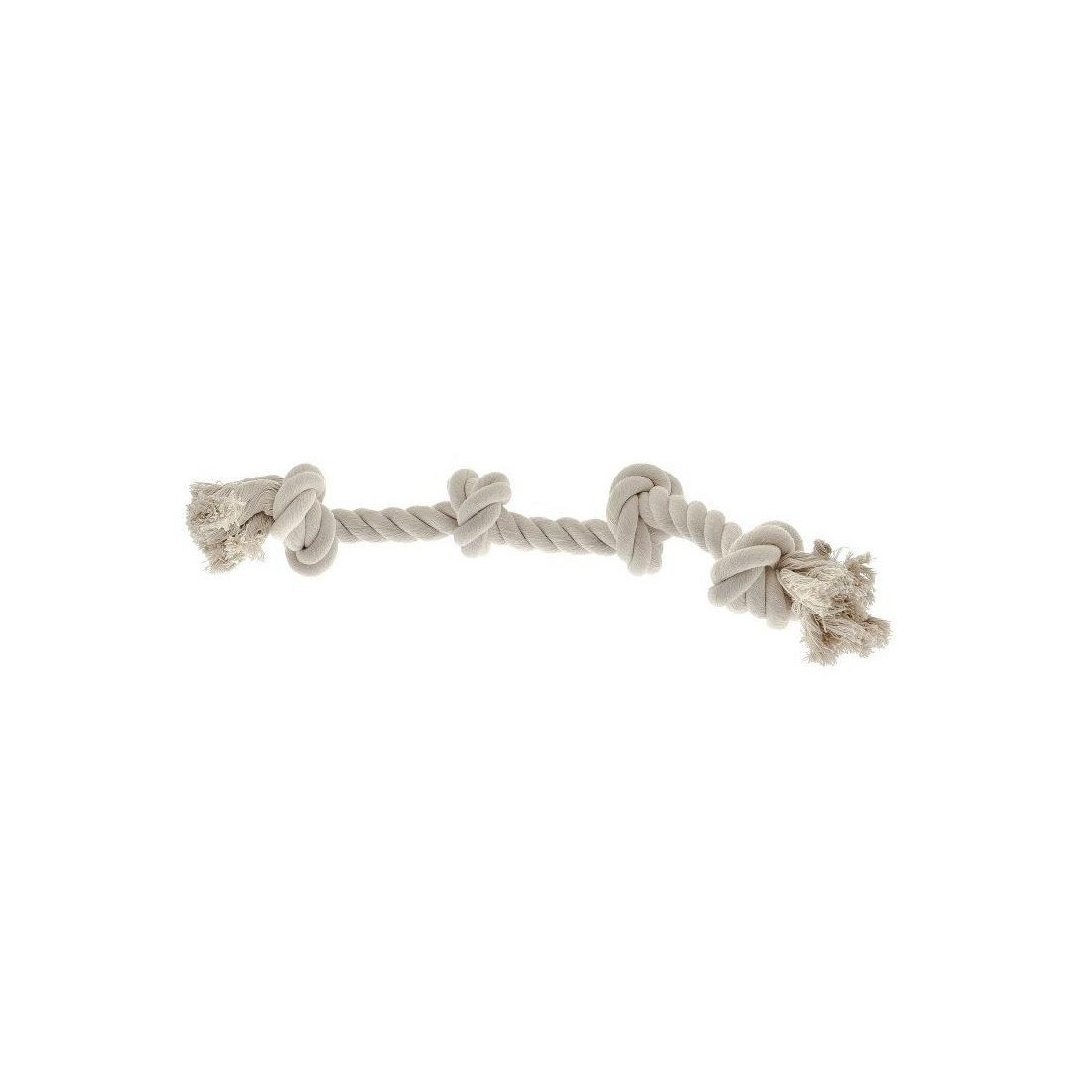 Corda in cotone annodata a forma di osso; la trama di cotone, durante il gioco, permette un'azione meccanica di pulizia dei denti.