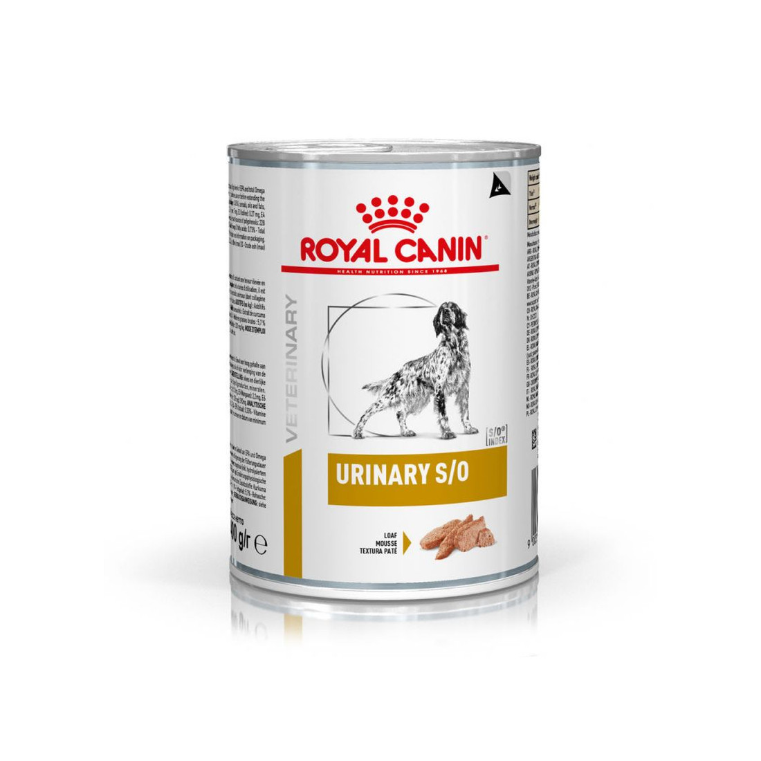 Alimento umido dietetico Urinary S/O di Veterinary, supporto nutrizionale per cani da 1 anno di età con problemi di calcoli di struvite/ossalato, infiammazioni vescicali e alle vie urinarie.