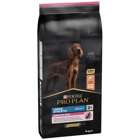 Purina Pro Plan Optiderma Large Athletic Adult è un mangime al salmone per cani grandi e atletici, con pelli sensibili. È un alimento completo ed equilibrato con una selezione di vitamine e minerali aggiunti per mantenere il vostro animale domestico sano e forte ogni giorno. PRO PLAN® con OPTIDERMA è formulato senza glutine di frumento. Include una speciale combinazione di nutrienti per la pelle che è stato dimostrato di aiutare a mantenere una pelle sana e una bella pelliccia e fonti selezionate di proteine per contribuire a ridurre le potenziali reazioni cutanee associate alla sensibilità alimentare.