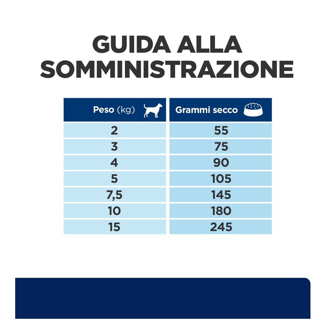 | Peso del cane (Kg) | 2 | 3 | 4 | 5 | 7,5 | 10 | 15 |
