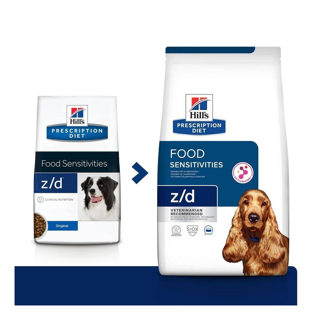 Se hai precedentemente alimentato il tuo animale con questa dieta prima dell'inclusione della tecnologia ActivBiome+, si consiglia un passaggio graduale a questo nuovo alimento in 7 giorni o più. Si prega di consultare il proprio veterinario per ulteriori informazioniL'alimento per cani Hill's Prescription Diet z/d è un nutrimento clinico appositamente formulato per supportare la sensibilità alimentare del tuo cane. Questo alimento per cani con sensibilità allo stomaco è clinicamente dimostrato di ridurre i segni della cute e dell'apparato digerente dovuti alle intolleranze alimentari. È un alimento per cani proteico idrolizzato che aiuta a evitare reazioni avverse e la nuova tecnologia ActivBiome+ per la digestione. Questo alimento secco per cani ha un gusto delizioso che il tuo cane adorerà.La sensibilità e l'intolleranza alimentare sono problemi potenzialmente seri che possono provocare irritazioni della pelle, del pelo e delle orecchie o persino disturbi gastrointestinali. I cani che hanno reazioni avverse al cibo dovute a un'allergia alimentare (tipicamente a una proteina nel cibo) o un'intolleranza traggono beneficio da un alimento progettato per la sensibilità alimentare.È importante continuare a somministrare Prescription Diet z/d alimento per la sensibilità alimentare del cane per aiutare a ridurre le intolleranze alimentari del tuo cane, anche dopo che i suoi sintomi sono migliorati. Consulta il tuo veterinario per ulteriori informazioni su come gli alimenti Prescription Diet possono aiutare il tuo cane a continuare a godere di una vita felice e attiva.Un'alimentazione dal gusto eccezionale che aiuta a trasformare la vita del tuo animale domestico. Poiché dipendono da te, ci sforziamo di fornire il miglior cibo possibile. Con formule scientifiche per rispondere alle esigenze di salute uniche del tuo cane, l'alimento per cani Prescription Diet è la nutrizione mirata di cui hanno bisogno per vivere una vita lunga e felice.Produciamo i nostri alimenti per animali domestici con ingredienti di altissima qualità. Questi ingredienti devono soddisfare i nostri severi requisiti di purezza e contenuto di nutrienti.Puoi fare la differenza nella vita degli animali domestici del rifugio. Con ogni acquisto di cibo per animali Hill's Prescription Diet, aiuti a nutrire oltre 100.000 animali senzatetto ogni giorno, 365 giorni all'anno. Scopri di più su Hillsfoodshelterlove.com.Gli alimenti per cani Hill's Prescription Diet sono disponibili in una varietà di cibi secchi e umidi, per le esigenze specifiche del tuo cane, in molti deliziosi gusti che il tuo cane adorerà.