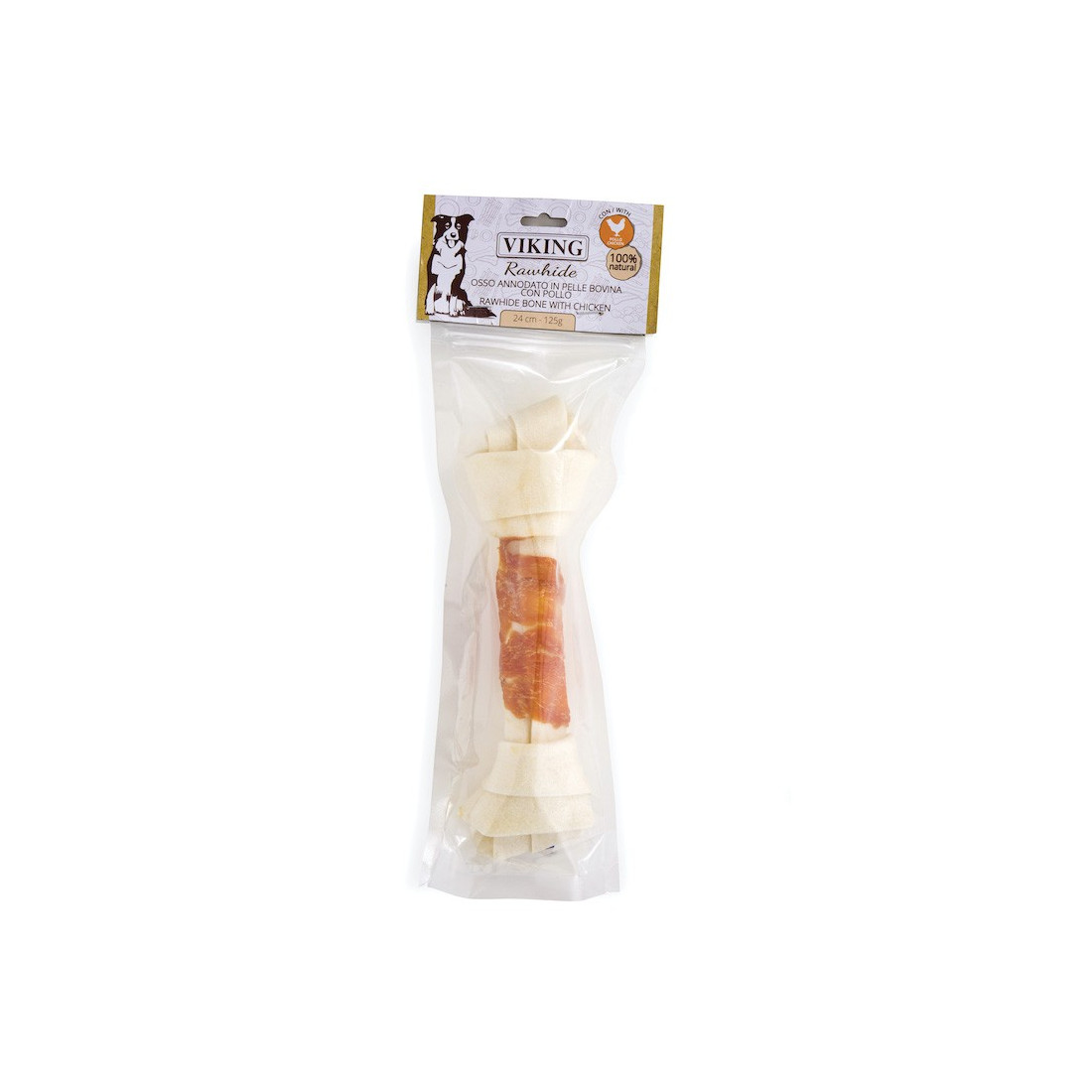 Petto di pollo 82%, petto di pollo 15%, amido di patate 2%, glicerina 1%.