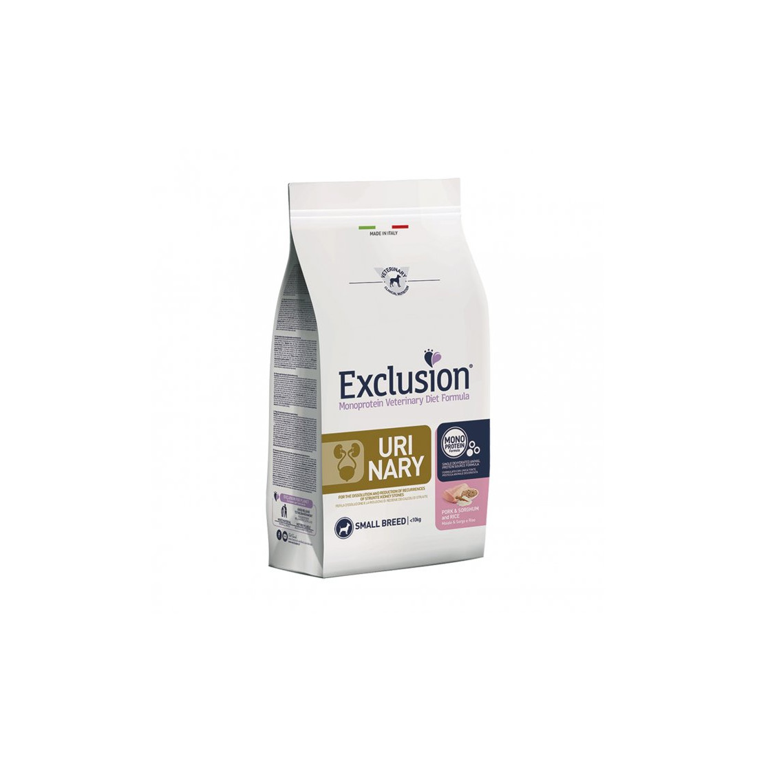 EXCLUSION CANE DIET ADULT SMALL BREED URINARY MAIALE SORGO E RISO DA 2 KG