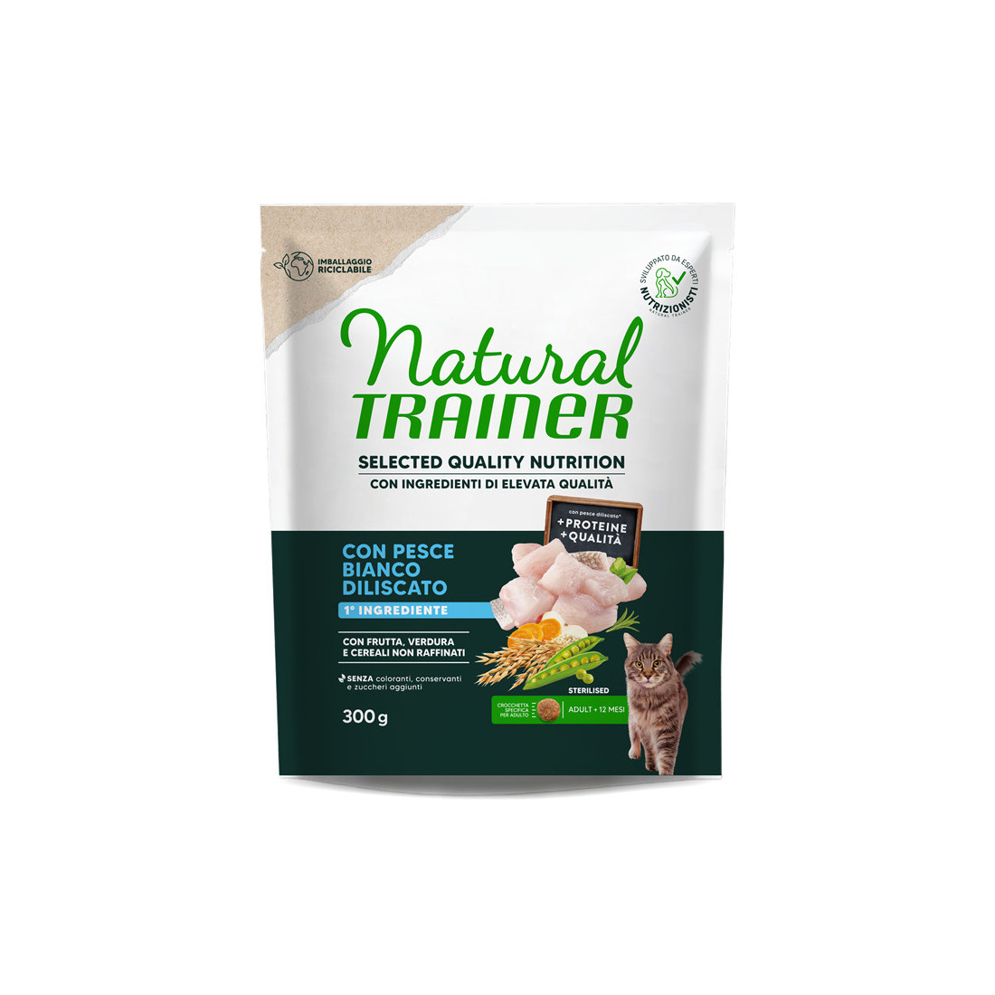 NATURAL TRAINER CAT ADULT STERILISED CON PESCE BIANCO DILISCATO 300 GR