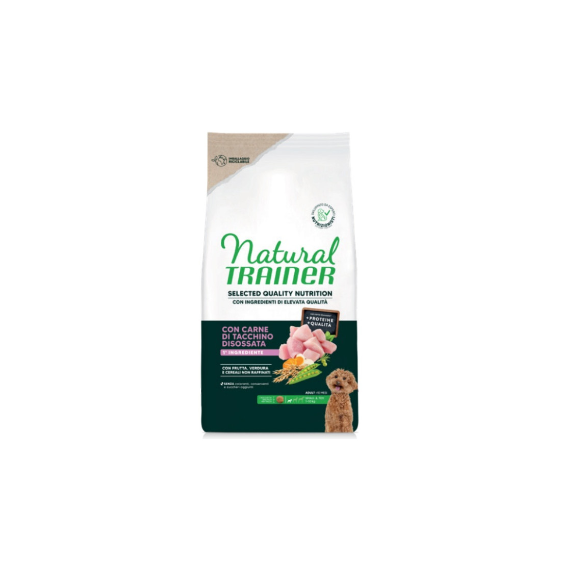 Regala una coccola quotidiana al tuo amico a quattro zampe con Natural Trainer Selected Quality Cane Small & Toy con Tacchino… la bontà naturale che fa scodinzolare di gioia!