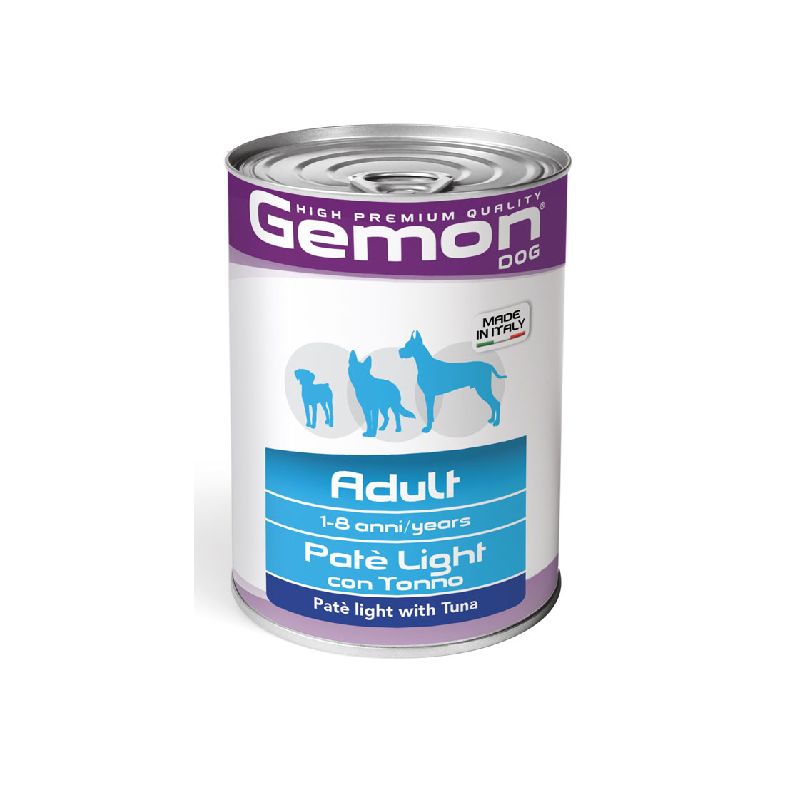 GEMON PATÉ LIGHT CON TONNO è un alimento completo per cani adulti di tutte le taglie, formulato per fornire tutti i nutrienti necessari per la vitalità quotidiana dei nostri amici a quattro zampe.