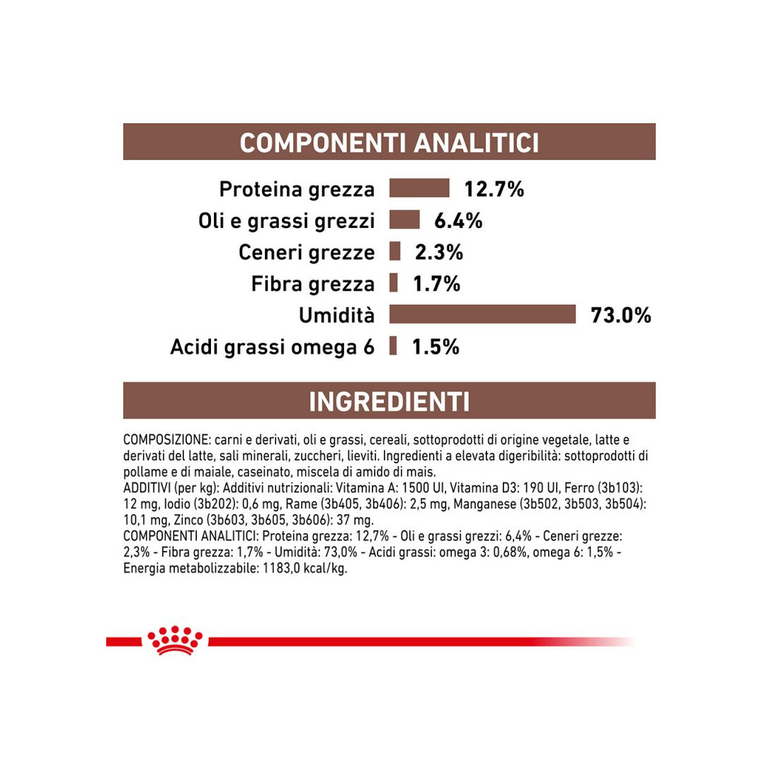 | Energia metabolizzabile | 118.3 kcal | ||||||||||||||||||||||||||||||||||||||||||||||||||||||