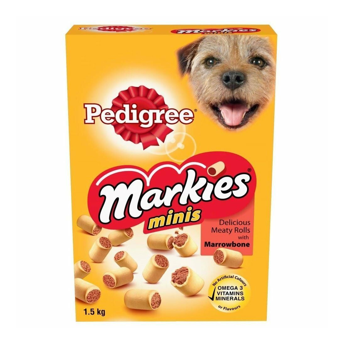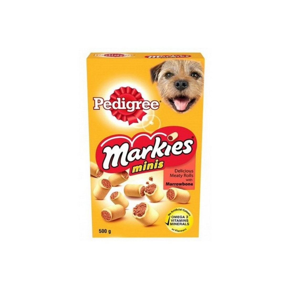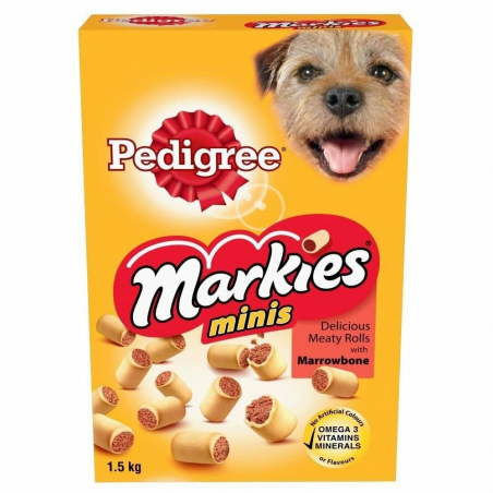Alimento complementare per cani adulti. Markies Minis sono biscotti deliziosamente croccanti ripieni di midollo. Sono perfetti da fare rotolare, lanciare e prendere, così da rendere i momenti di gioco insieme ancora più divertenti.