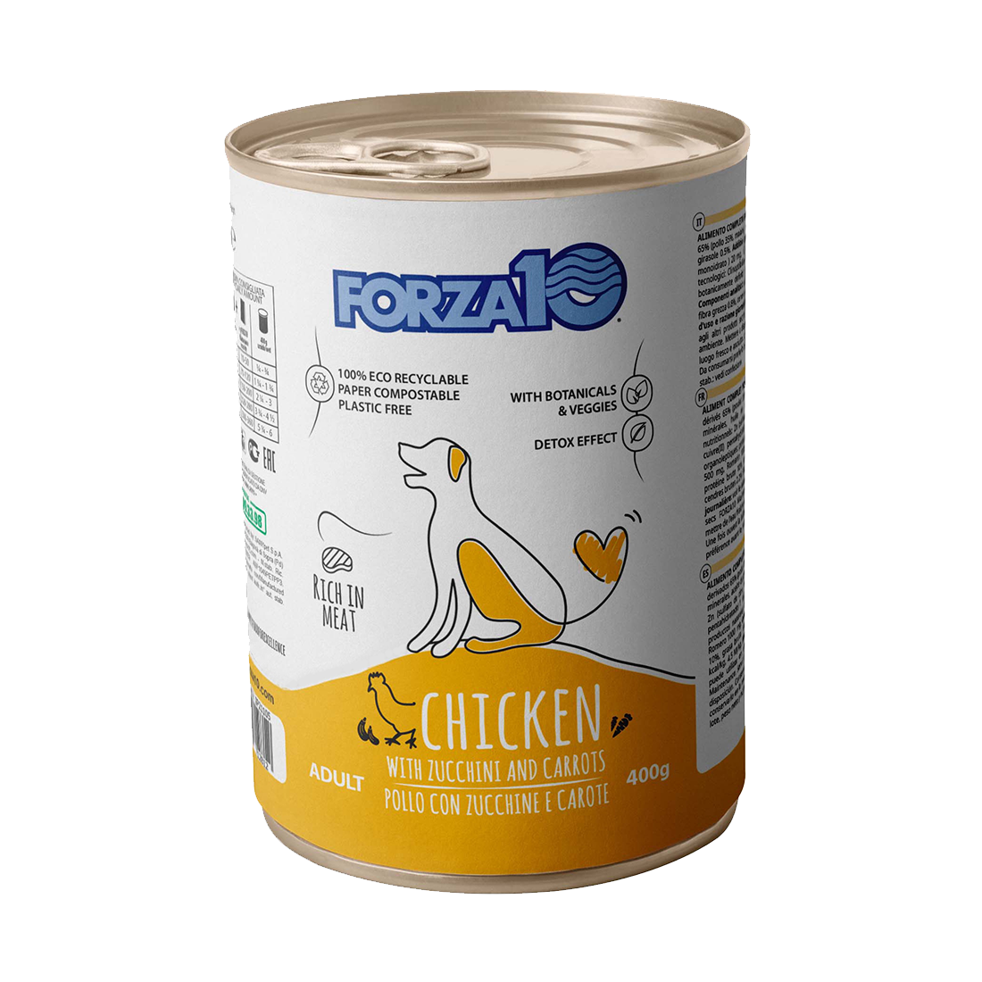 Maintenance pollo con zucchine e carote è un alimento umido di mantenimento per cani.