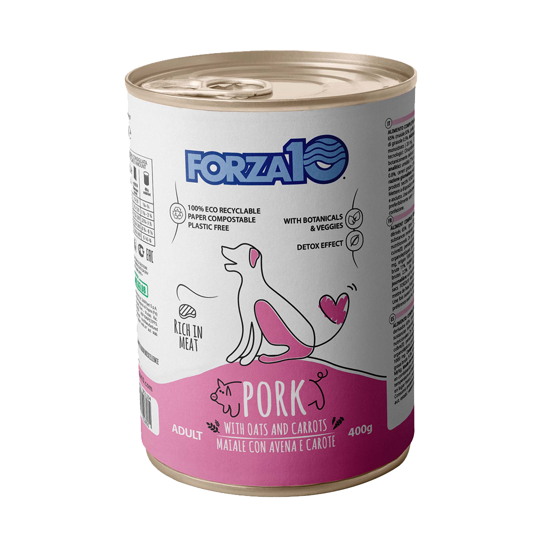 Maintenance maiale con avena e carote è un alimento umido di mantenimento per cani.