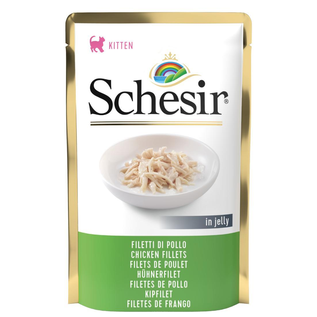 La ricetta Schesir è a base di veri filetti di pollo, con una piccola aggiunta di olio di girasole, che apporta acidi grassi omega. La preparazione è in gelatina, per una consistenza sfiziosa e più compatta nella ciotola.