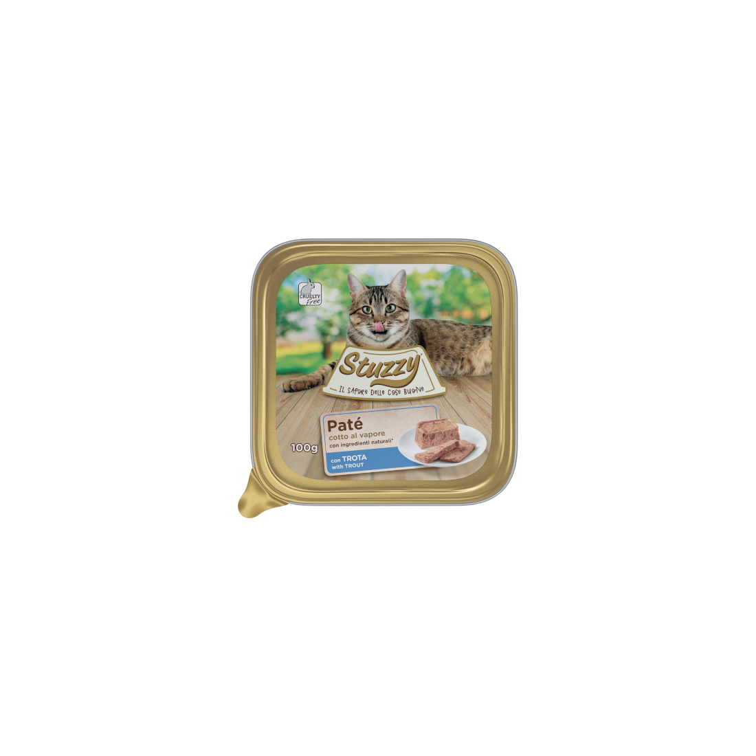 Cerchi un alimento completo per soddisfare il gusto del tuo gatto per il pesce? Offrigli il sapore vellutato del Paté con Trota di Stuzzy, ricco di ingredienti naturali cotti al vapore. Per un pasto genuino, ogni volta speciale.
