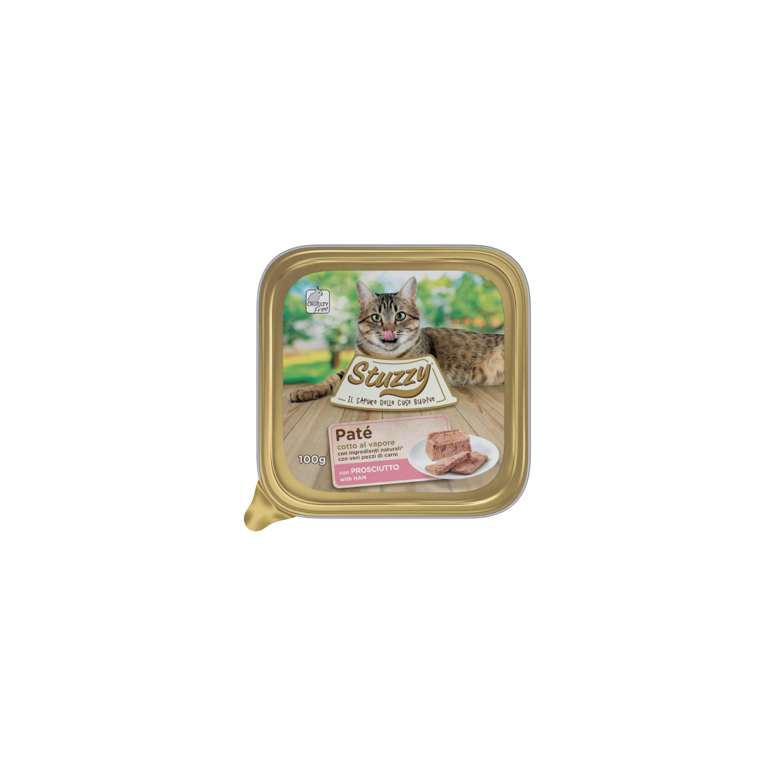 Tutto il buono del prosciutto e una morbidezza irresistibile… il Paté con Prosciutto di Stuzzy è l’alimento completo per assicurare tanto gusto al tuo gatto, con veri pezzi di carni e la cottura al vapore, per fargli gustare tutta la genuinità degli ingredienti naturali selezionati.