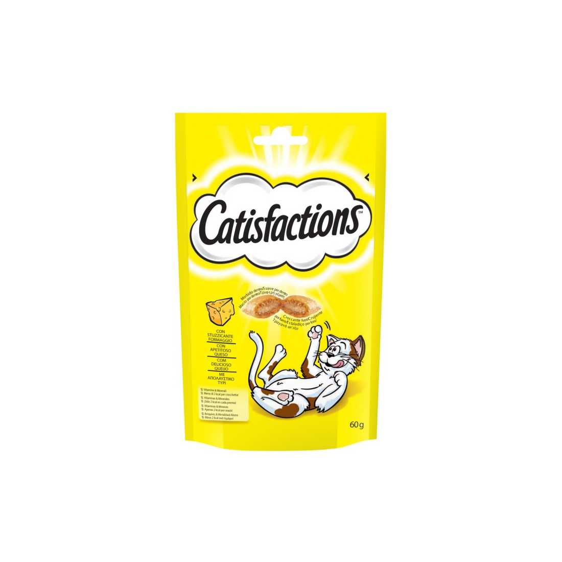 CATISFACTIONS® è una gamma di irresistibili snack con cui potrai premiare il tuo gatto in ogni momento della giornata. Hanno una gustosa consistenza, croccante fuori e morbida all’interno.
