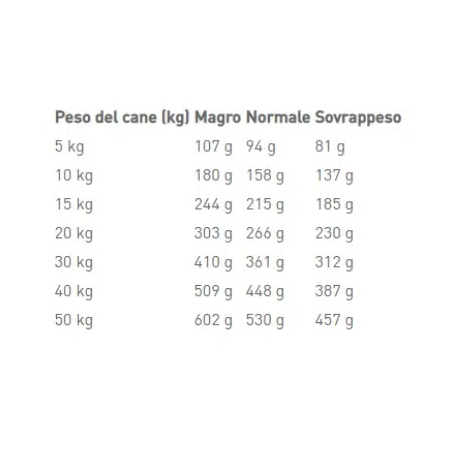 Componenti analitici: Proteina grezza: 16,0% - Oli e grassi grezzi: 16,0% - Ceneri grezze: 4,7% - Fibra grezza: 1,9% - Acidi grassi essenziali: 3,86% - EPA/DHA: 0,2% - Sodio: 0,2% - Rame: 3 mg/kg.