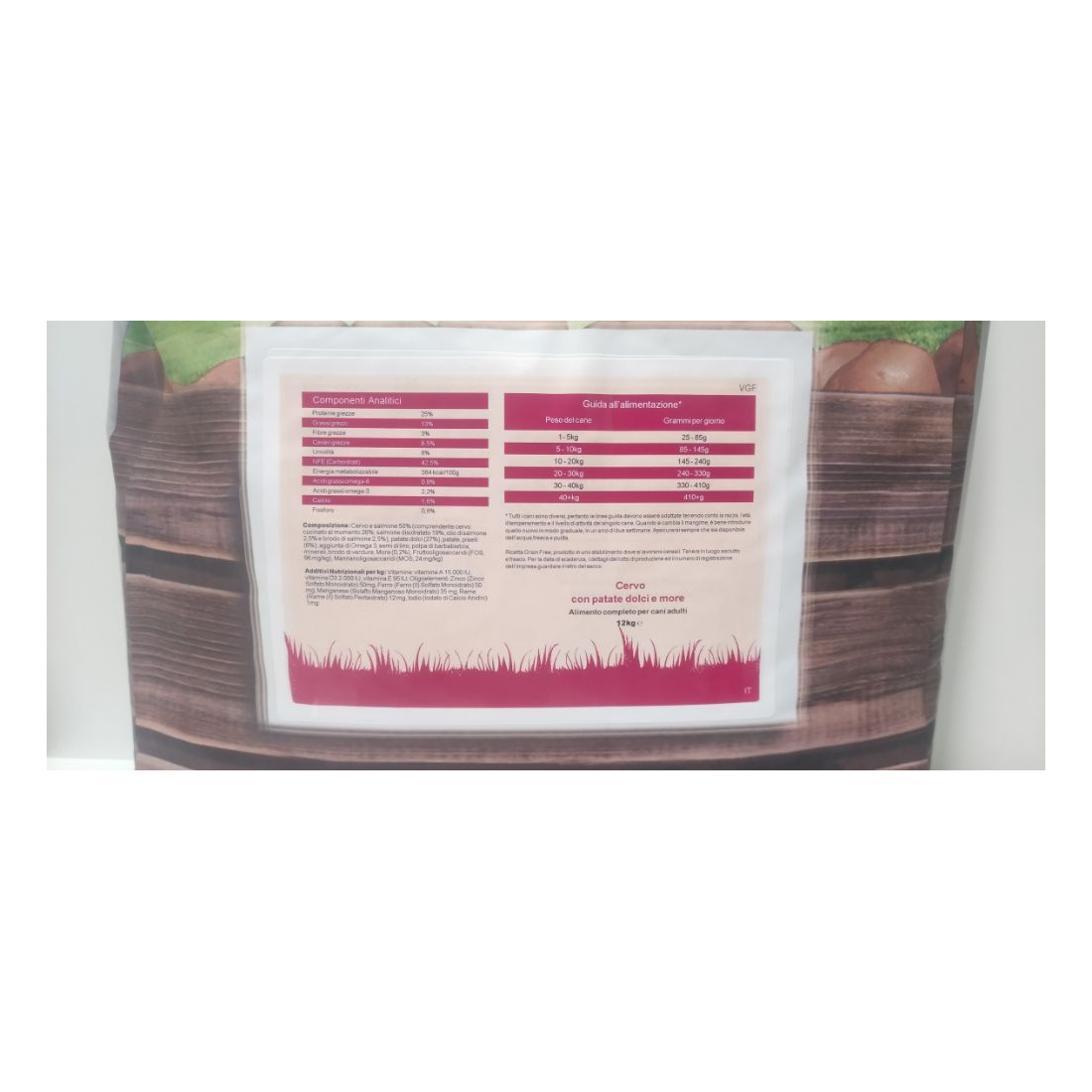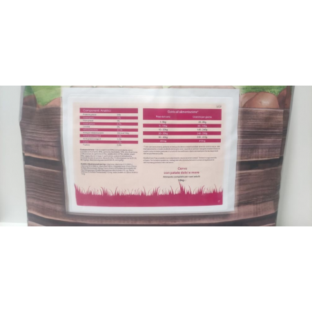 - Minimo 26% di Cervo cucinato al momento Fonti proteiche approviggionate responsabilmente e altamente digeribili.