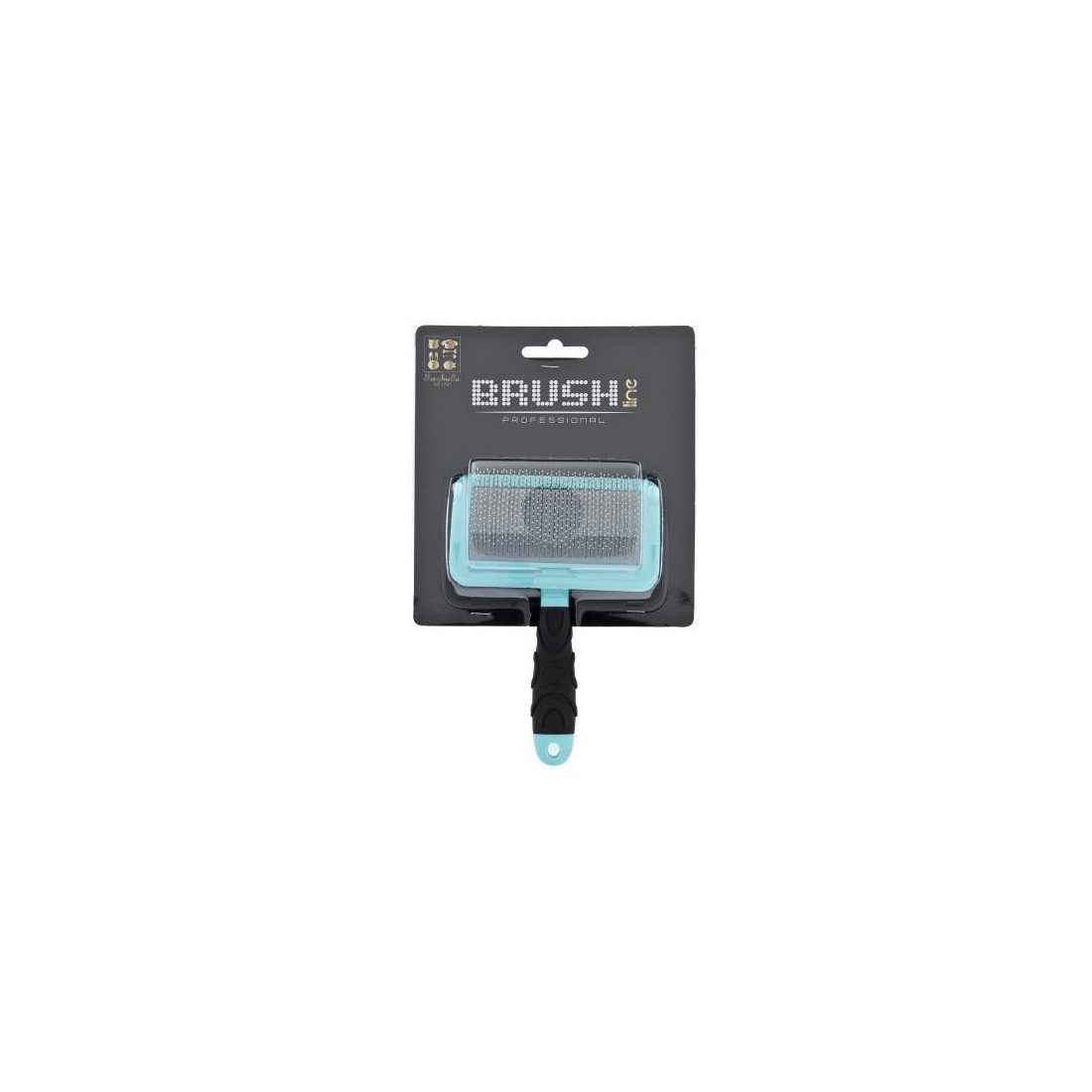 Spazzola adatta a cani e gatti composta da fili in acciaio con punte ricoperte adatta a trattenere il pelo residuo agendo in maniera delicata sulla cute.