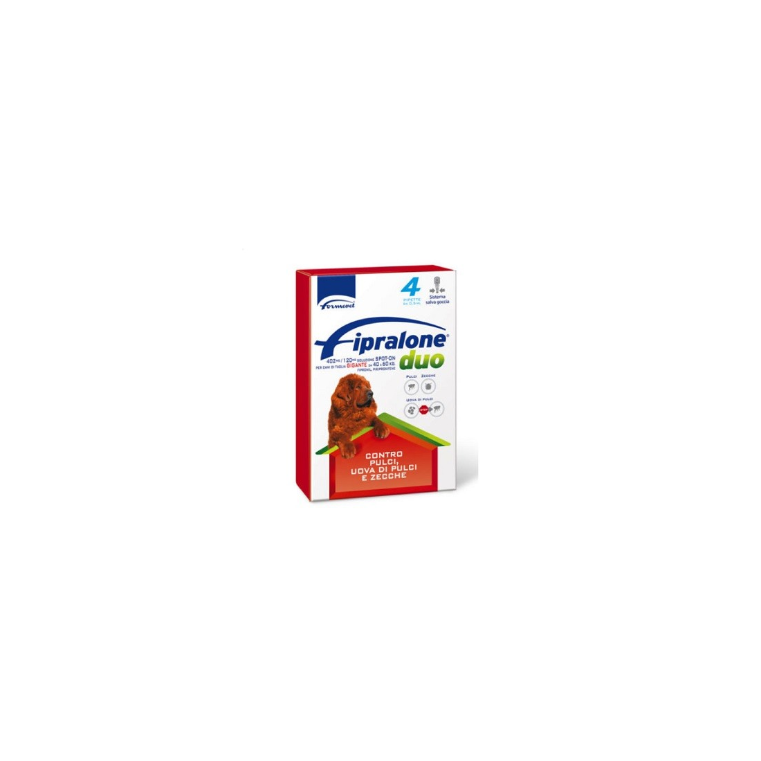 Una singola confezione di Fipralone duo spot on, contiene 4 pipette ciascuna sufficiente a: