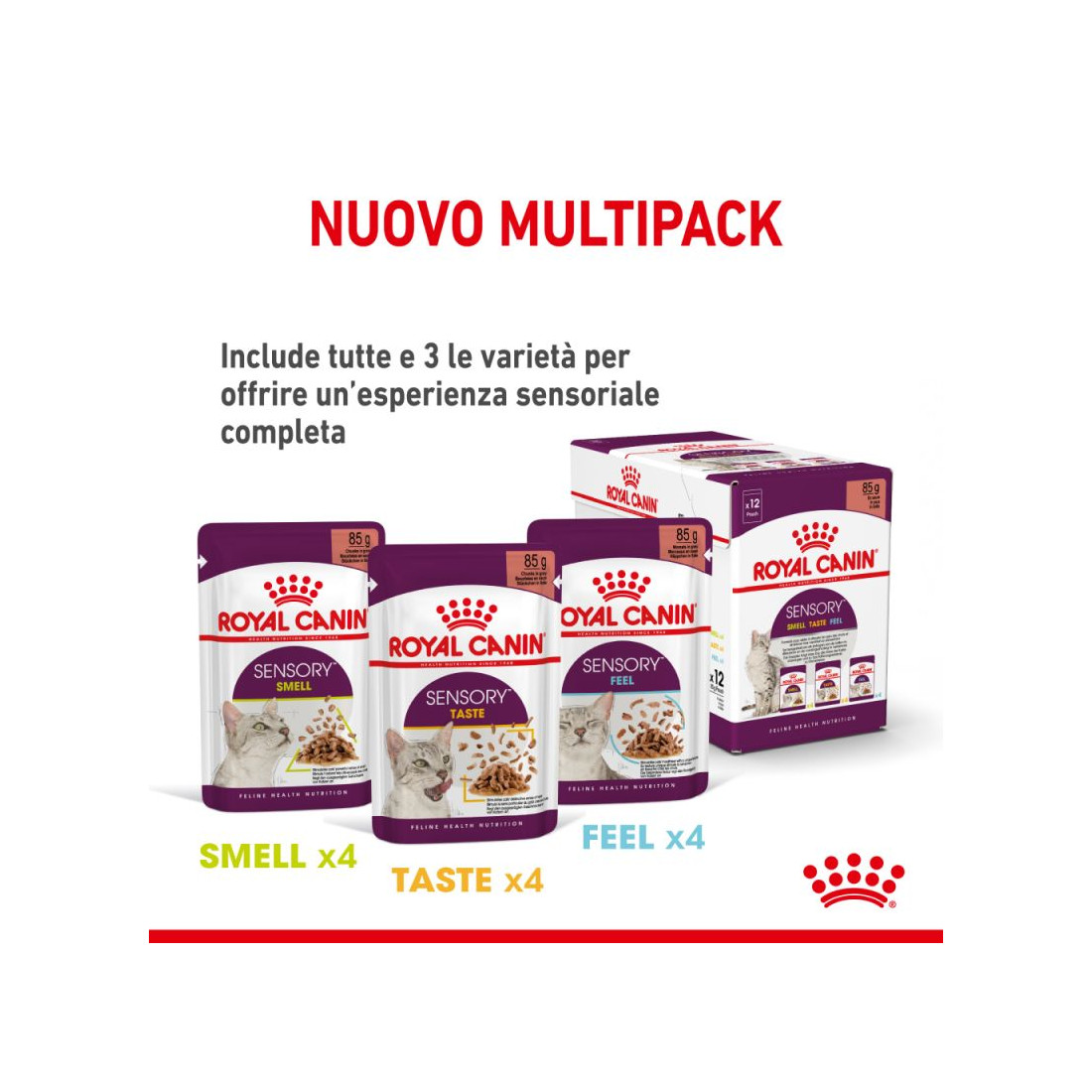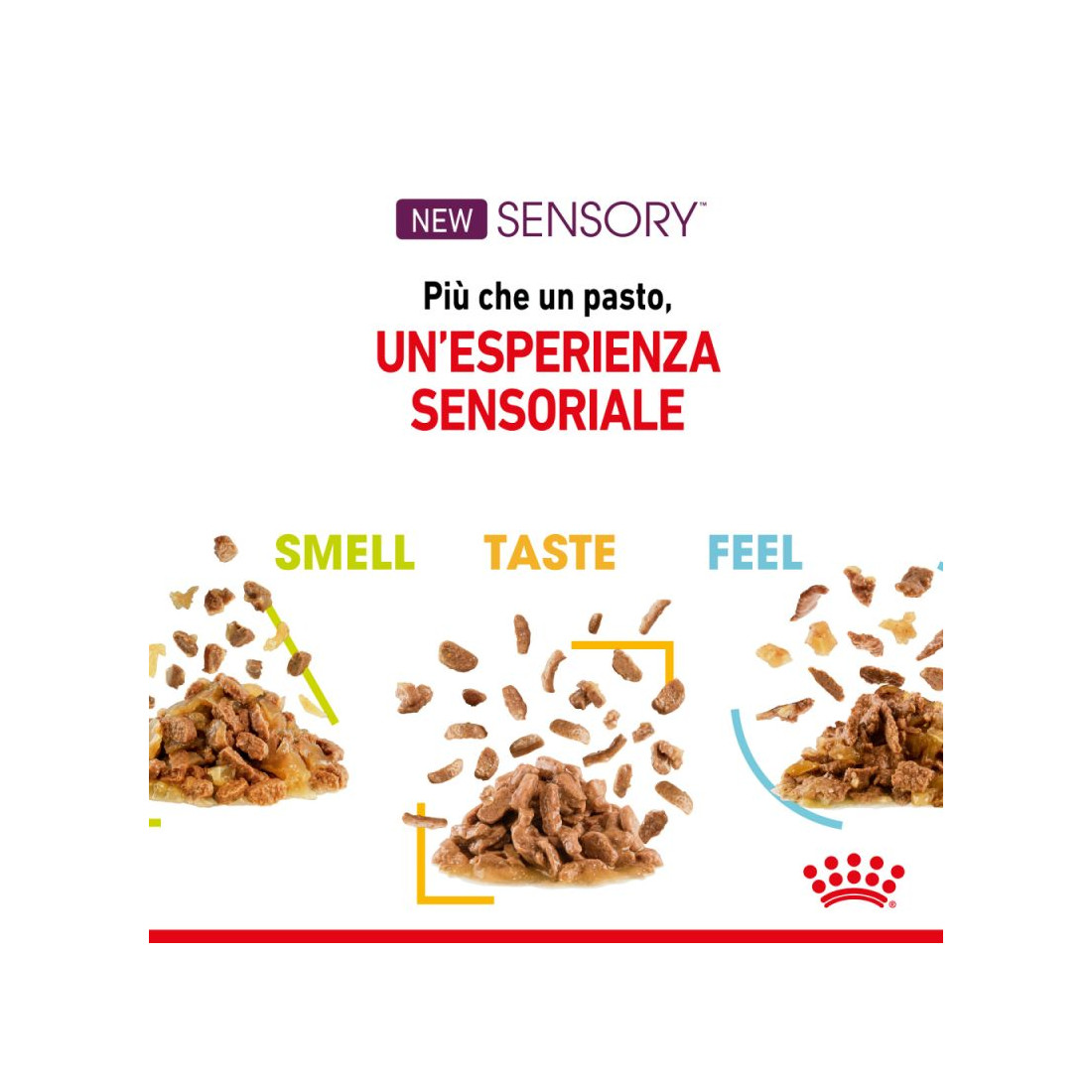 L'alimento per gatto in salsa Royal Canin Sensory Feel è composto da sfiziosi straccetti in grado di stimolare, durante il pasto, il senso di piacere alla masticazione, la sensazione generata dalle diverse consistenze dell'alimento crea un forte impatto sulla esperienza alimentare del gatto. La formula di Royal Canin Sensory Feel è caratterizzata da consistenze uniche che esaltano le sensazioni di piacevolezza percepite nella fase di masticazione. Royal Canin Sensory Feel fa parte della prima generazione di mangimi per gatti che stimola i sensi per unire il piacere al benessere.