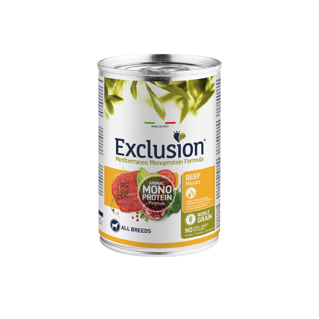 Exclusion Mediterraneo Monoprotein Formula – Noble Grain é un alimento completo e bilanciato formulato con una sola fonte proteica animale disidratata, per una ricetta chiara ed essenziale, e solo un cereale nobile di alta qualità. È preservato con antiossidanti naturali e integrato con Beta-glucani. È realizzato con una innovativa ricetta di Superfood della tradizione Mediterranea: Canapa, Olio d’Oliva, Pomodoro, Melagrana, Broccolo e Cicoria. Senza grasso di pollo, frumento, soia e mais aggiunti.