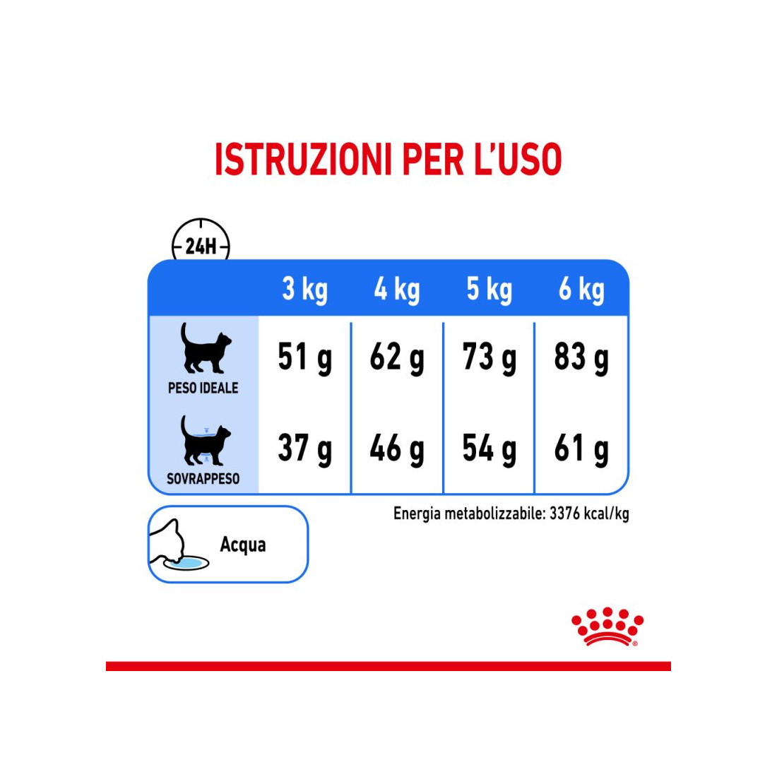| Peso del gatto | Quantità di alimento | Quantità di alimento in caso di riduzione del peso |